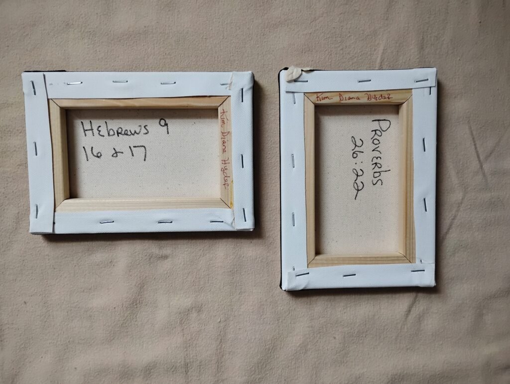 Each piece in this collection is created with intention, prayer, and devotion. What you see here is more than art—it is a reflection of faith expressed through texture, scripture, and quiet inspiration.